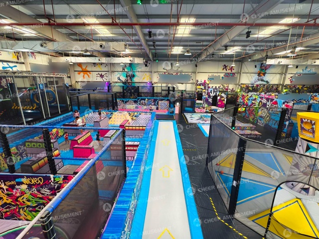 This full-scene Funland Sports Indoor Park is based on the new concept of "Game +" with nearly 5,000 square meters in size. It integrates games, sports competitions, adventure challenges with sound and light experience. Fun trampoline park, climbing wall, quick jump, rope course, parabole slide, wave donut slide, ninja course and many other cool and exciting games are included. It aims to become a clock-in point for rest, sports and entertainment for generation Z, a new choice for group building parties, and a good place for family entertainment! As a leading manufacturer meets both EN and ASTM safety standards, Cheer Amusement is your best parter for a successful turnkey entertainment play solution.Website: www.playground.cnEmail: info@playground.cn